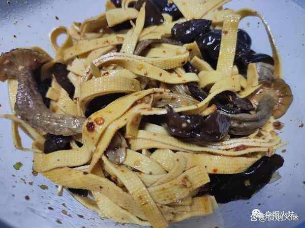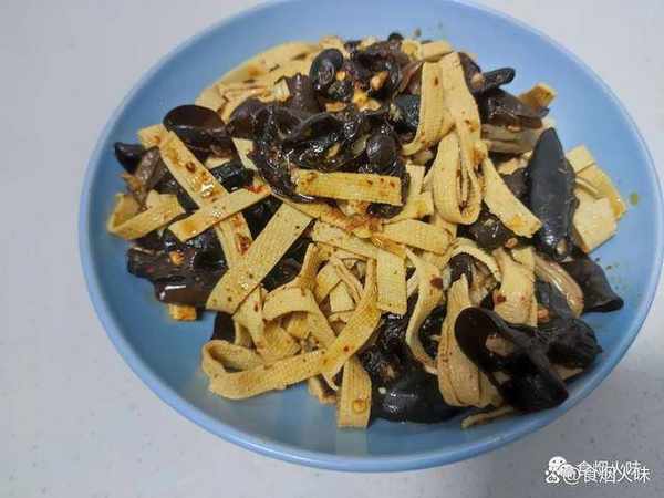 千張,木耳,鹿茸菇,食鹽,蠔油,醬油,香油,辣椒面,蒜瓣
