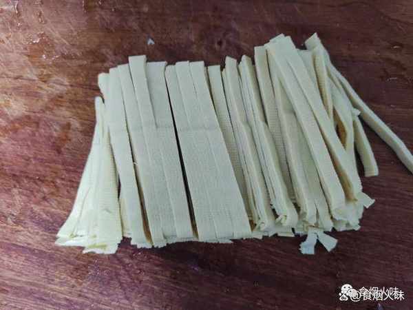 1.千張洗幹凈,洗凈後切成細絲狀。鍋內倒入水,鍋內的水開,然後將備好的千張放在鍋中。下鍋焯水後撈出放在一旁備用;