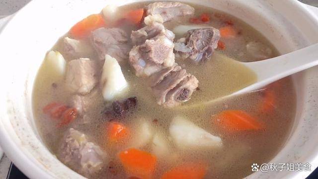 2、砂鍋中加入蔥薑爆香,再把排骨、薏仁倒入鍋中,炒出肉的香味,加入適量的開水,加入少許的調料,用大火燒開,轉小火燜40分鐘左右,然後再準備一根山藥去皮,再切成滾刀塊,半根胡蘿卜切成塊,排骨燉軟爛。再把胡蘿卜和山藥一起倒入鍋中,加入少許食鹽,攪拌一下,再燜煮20分鐘左右,將山藥煮熟。最後來點枸杞,再煮至兩分鐘就可以瞭。