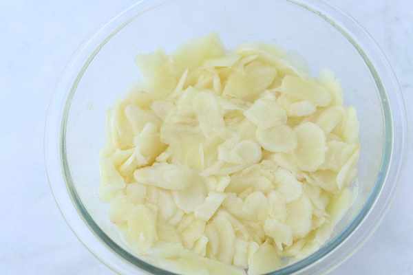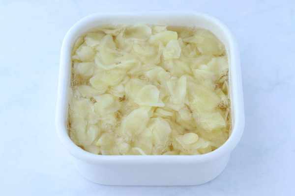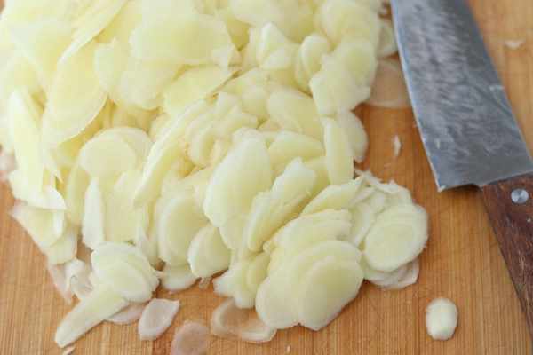 2、接著便是考驗刀工的一步,將仔薑耐心切成薄片,盡量薄一些,更容易泡透,吃著滋潤更好。