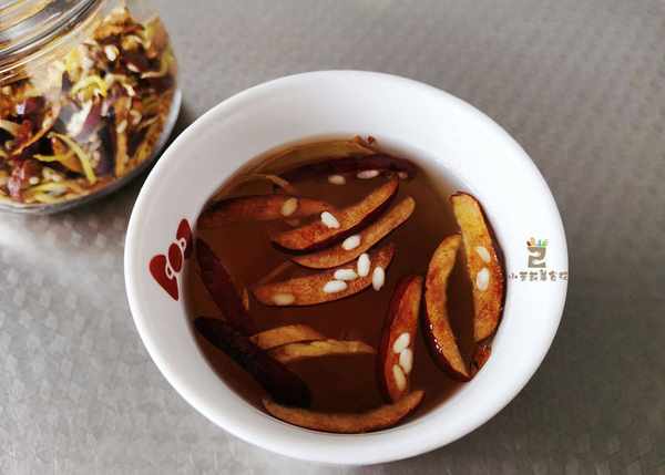 5、關火之後,將鍋端離灶臺,徹底冷卻之後,裝進玻璃罐子,平日裡密封保存。想喝的時候,用幹凈的勺子舀一些出來,放到杯子裡,加入溫水泡十分鐘,就可以暢快飲用瞭,棗香,米香四溢,夾雜著生薑的一點點辣味,刺激著我們的味蕾,令人身心舒暢。