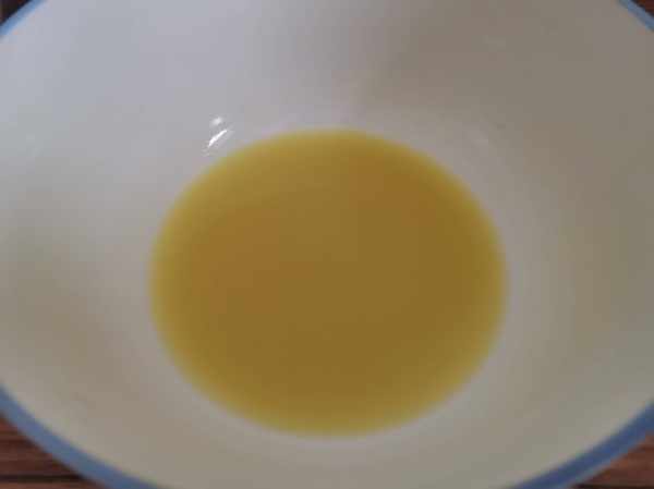4、薑汁中可能會有一些薑蓉沉底,我們先晃一晃,接著將牛奶淋入薑汁中,保持一個比較高的位置讓牛奶傾斜至碗中。
