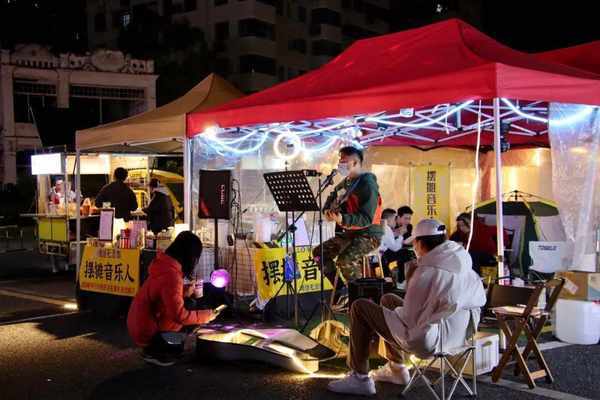 一排排新潮個性的攤位掛上彩燈和霓虹招牌,吸引著遊人上前。