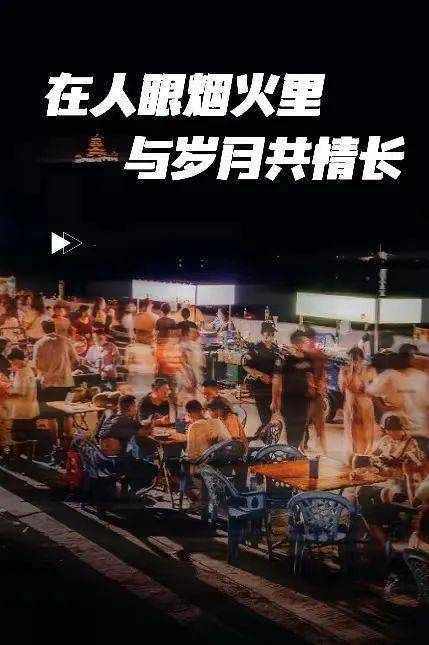 露天影院傳來陣陣音樂,孟洲壩夜市在星空的掩映下,燈光閃爍,熱鬧非凡……