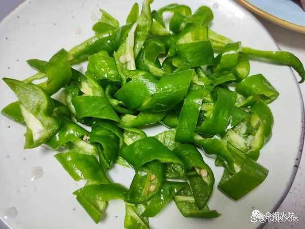 2.炒的過程中加點青椒,增加鮮香味道。不用加太多調味品,炒一炒,出鍋後鮮脆好吃。