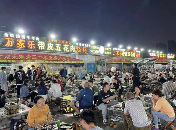 淄博的燒烤是露天的。有那種大排檔的氛圍。很有煙火氣息,夏天大傢坐在一起熱熱鬧鬧的吃著燒烤,吹著晚風,嘮嘮嗑,真的是別有一番風情。
