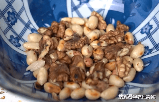 黑白芝麻放入鍋中,先用小火把鍋中的水分炒幹。炒到芝麻在鍋中跳動起來關火出鍋。接下來把花生米放在鍋中,把花生米炒幹,炒到花生米的外皮變幹的時候,加入核桃一起翻炒,讓核桃在鍋中和花生米一起炒熟。全程用小火來慢炒,炒到花生米在鍋中有破皮的聲音出鍋。