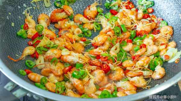 5、起鍋熱油,倒入小河蝦大火爆炒,炒到顏色變紅蝦殼變脆,就可以先盛出來瞭。