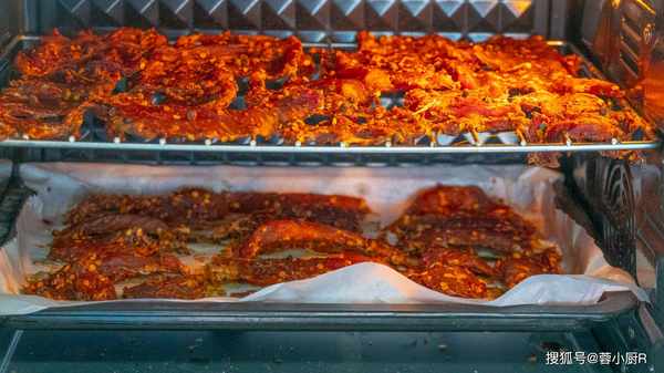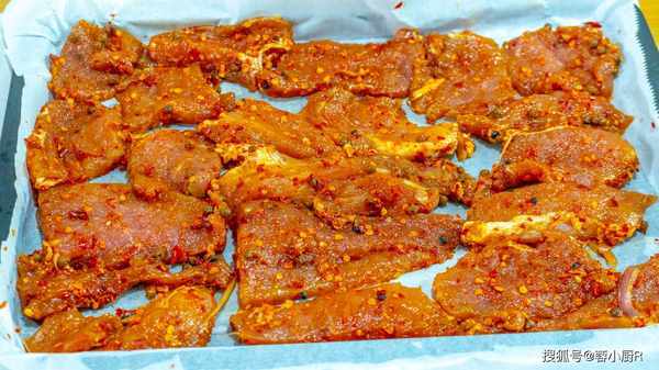 4、這個調料做出來是麻辣口味的,非常的香,充分的抓拌均勻後醃制一夜。醃好後我們再把肉拿出來風幹,直接放在烤盤或者是烤架上。
