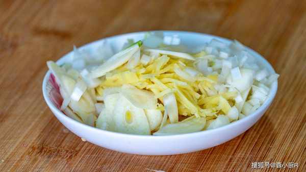 4、再切點蔥薑蒜,大蔥切蔥花,生薑切絲,大蒜切片。
