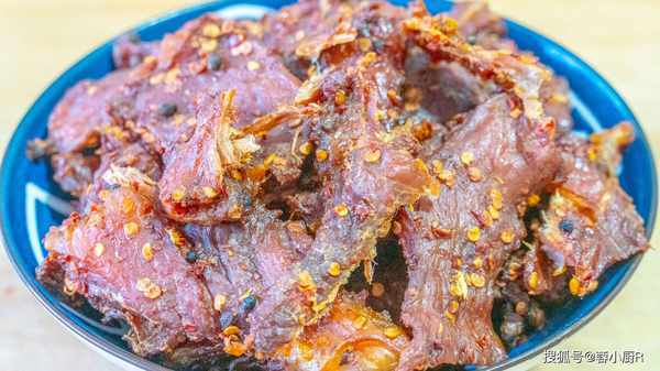 口感上微麻微辣,粗辣椒面和整粒的花椒,會讓風幹肉的口感更好,而且咸度也是剛剛好。同時吃起來非常的有嚼勁,和牛肉幹一樣的好吃,撕開也是可以拉絲的。