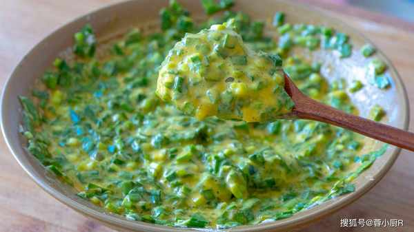 食材清單 :200克韭菜、100克面粉、1勺鹽、1勺雞精、5個雞蛋