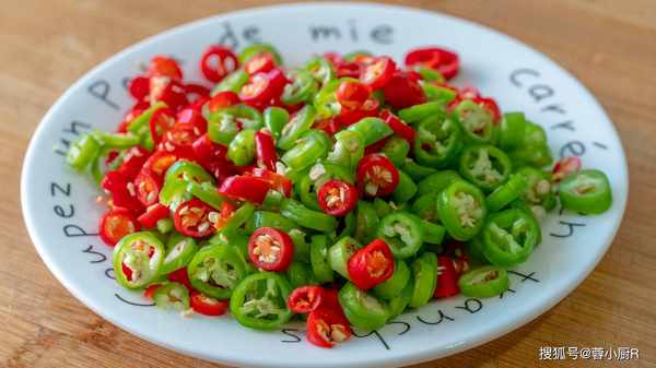 3、醃河蝦的時候我們來切點配菜,青紅椒各準備幾個,洗凈後切成小圈圈備用。
