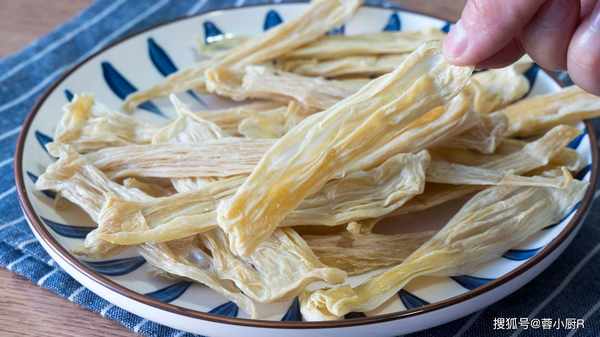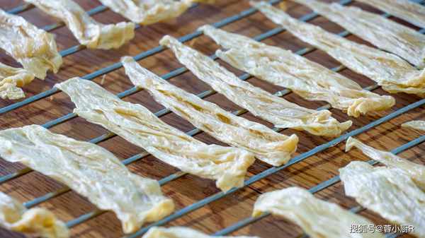 6、挑腐皮的時候我們可以先用筷子讓邊緣與鍋分離,然後用筷子把它挑出來就可以瞭,挑出來的腐皮放到晾架上晾幹,放好後就不要再動它瞭,這半鍋豆漿可以出四十張左右的腐皮;全部挑出來後就可以風幹瞭。
