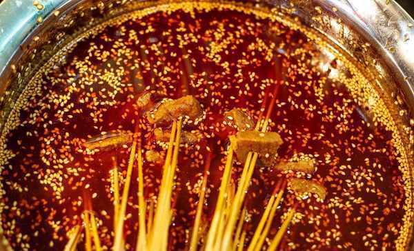 四川燒烤是一種以烤制串串肉為主要特色的美食,源自於中國四川省的地方小吃文化。它的特點是調料豐富,味道麻辣鮮香,口感濃鬱,能夠很好地表達瞭四川的烹飪特色,是四川省和中國西南地區餐飲文化的重要組成!