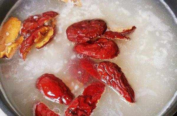 6. 煮開後放入紅棗片(有枸杞的這裡一起放)。