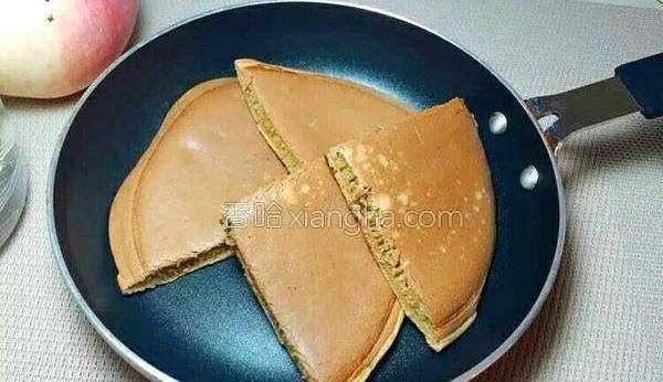 7.煎餅中間過程翻一面煎下就好,然後拿起來切塊,出鍋啦出鍋啦