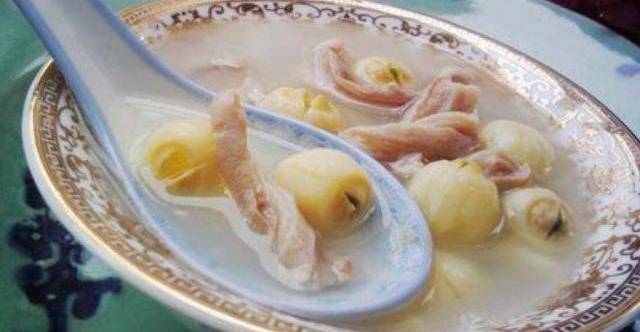 第三步,最後半個小時的時候加蓮子燉,燉至蓮子軟爛,加鹽和雞精調味就可以出鍋瞭,食用的時候加些胡椒粉就可以食用瞭。