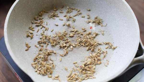 2.洗過的谷芽和麥芽倒入平底鍋中,不用放油,中小火把谷芽、麥芽煸炒至微微焦黃。炒過的谷芽和麥芽去掉瞭濕氣,更有利孩子脾胃吸收。