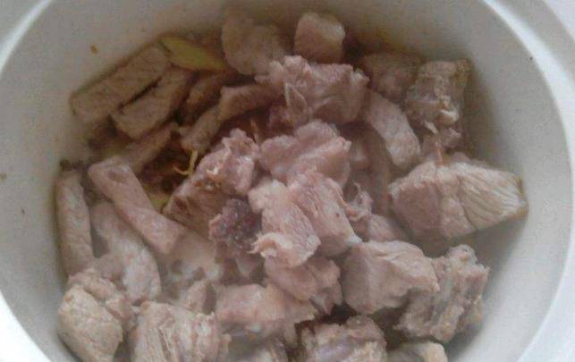 然後將排骨放進砂鍋當中,放入足量的水,大火煮開之後轉成小火燉30分鐘左右,最後將山藥去皮之後清洗幹凈,切成段放進鍋中,一直等到山藥和排骨都非常的軟爛,加入適量的食用鹽攪拌一下,就可以關火瞭。