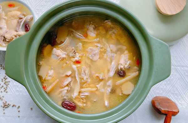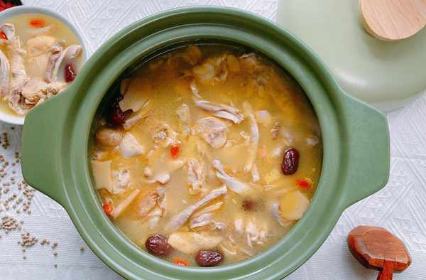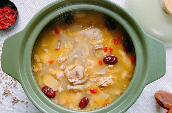 2、豬肚雞湯在燉煮的過程中,想要更滋補,可以加點黨參;