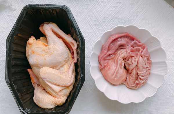 【原材料】走地雞一隻、豬肚一個、生薑、白胡椒、食鹽、料酒;
