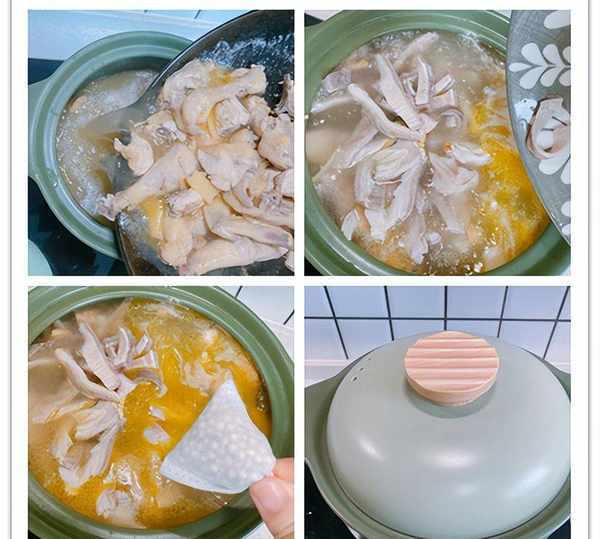 13、豬肚和雞的燉煮時間和食材本身有關系,雞是土雞,需要燉煮的時間久一點,期間要註意觀察,可以打開蓋子,用筷子戳一下食材,能輕松穿透,說明燉煮好瞭;