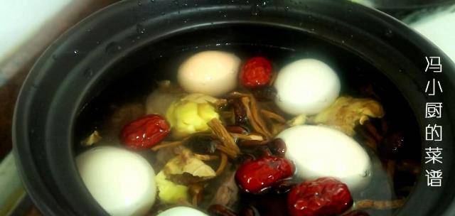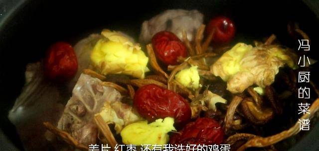 5.找1口幹凈的砂鍋,下入焯好的鴨肉,幾片老薑片,條件允許的話,有錢的話加點紅棗,我們還加瞭一些土雞蛋一起燉給傢裡的小孩吃。