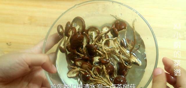 2.準備100克幹茶樹菇,先用清水清洗幹凈,然後用溫水泡10分鐘左右。