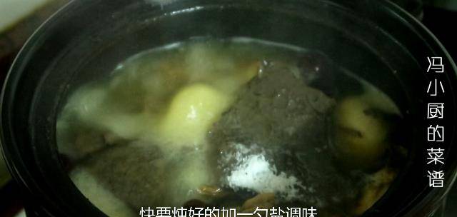 7.鴨湯煮1-2個小時後,掀開蓋子,再加入適量的枸杞,最後,再放入少許的鹽調味,這樣燉出來的效果,湯鮮味美,特別好喝。