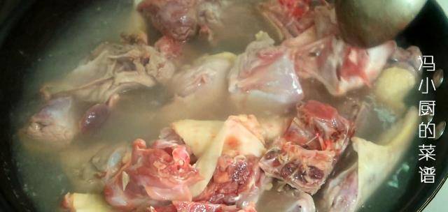 6.加入清水以沒過鴨肉為準,水必須一次性加滿(喜歡喝湯的可以多加一些),中途切忌加水,大火燒開後,再轉小火並蓋上鍋蓋,煮1-2個小時。