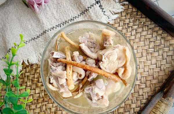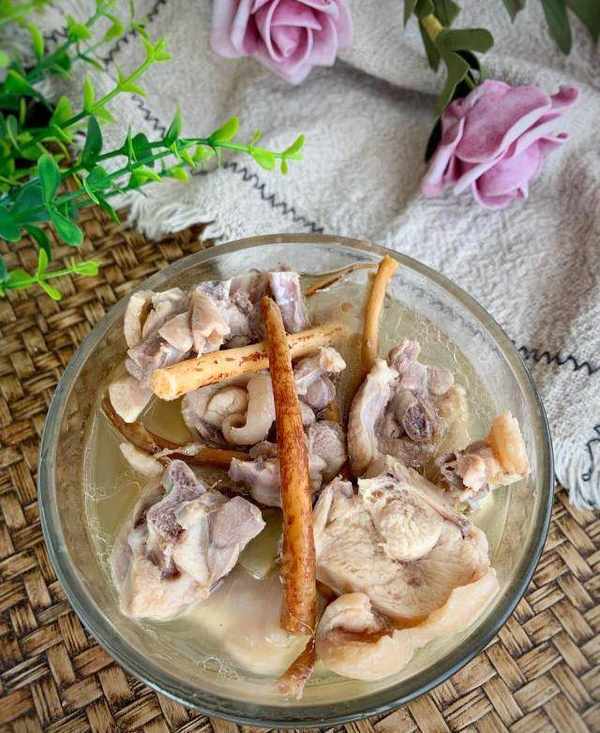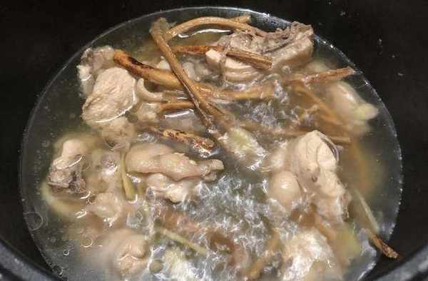2、五指毛桃先加入煮出味再加入雞肉進去煮,以免雞肉煮得太熟。