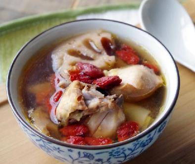 食材:蓮藕,墨魚幹,雞肉,蓮子,陳皮,生薑,紅棗,食鹽