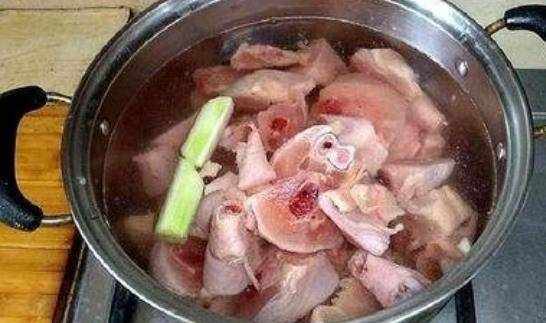 3,鍋中加入適量的清水,冷水下鍋給雞肉焯水,煮開之後撈出沖洗幹凈備用。