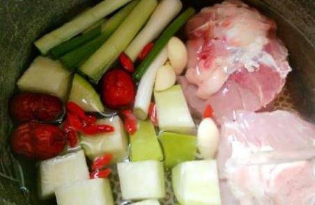 3,大棗枸杞洗幹凈,備用。把所有洗幹凈的食材放進鍋裡,加水,煮半小時就可以瞭。