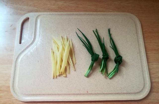 第六步:生薑去皮切絲,蔥花清洗幹凈紮成小捆。