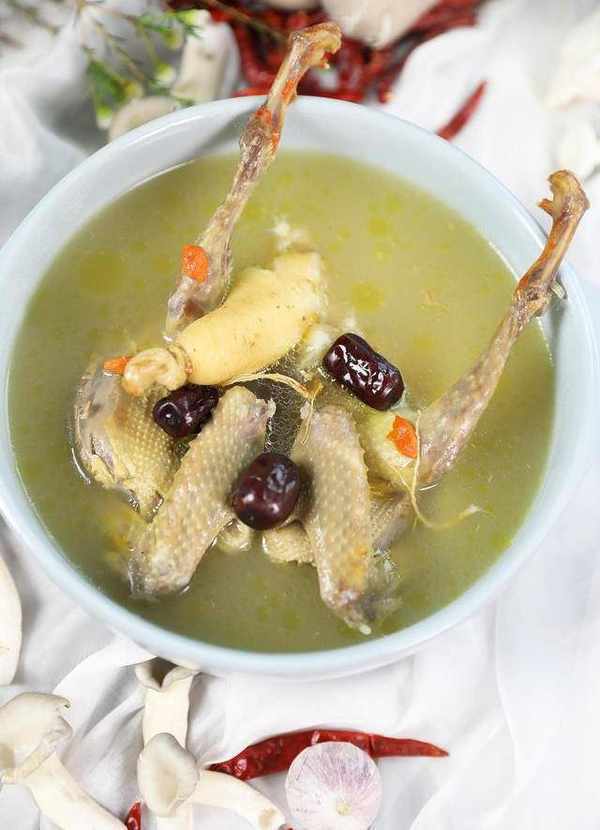 乳鴿1隻約350克/鮮人參一根/紅棗6粒/枸杞少許/鹽適量