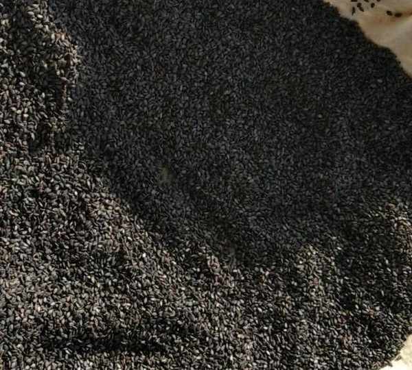 第2步、筐裡鋪佈,放上洗凈的芝麻,放太陽下曬幹。