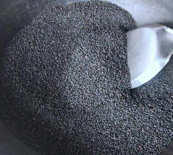 第5步、最後把九蒸九曬的芝麻炒熟。炒芝麻需要大火快速炒。