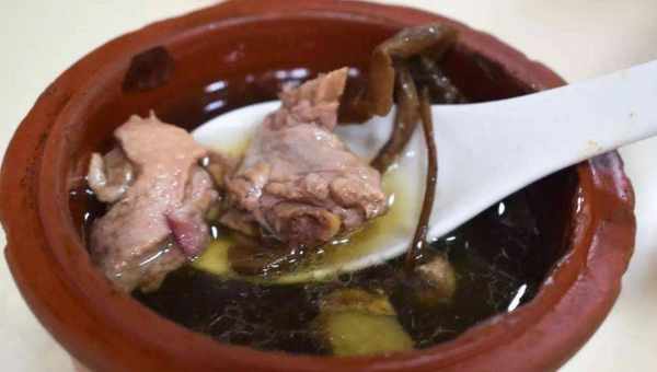 材料:老鴨、幹茶樹菇、高湯、鹽、味精、胡椒粉、蔥薑、料酒