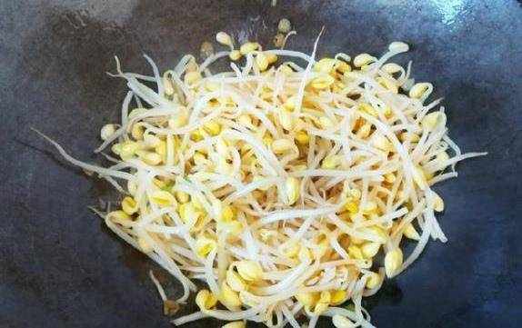 3,然後炒豆芽,鍋裡放油,先把蔥花炒香,然後加入豆芽,翻炒3分鐘。
