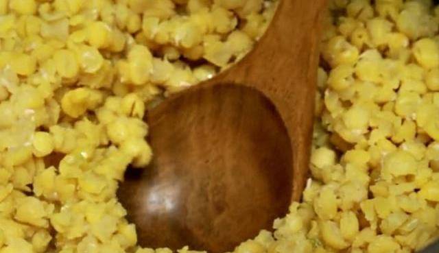第三步:豌豆煮好後,用勺子按壓一下,都按壓成泥,把豌豆泥過濾一遍,過濾出裡面的大顆粒。