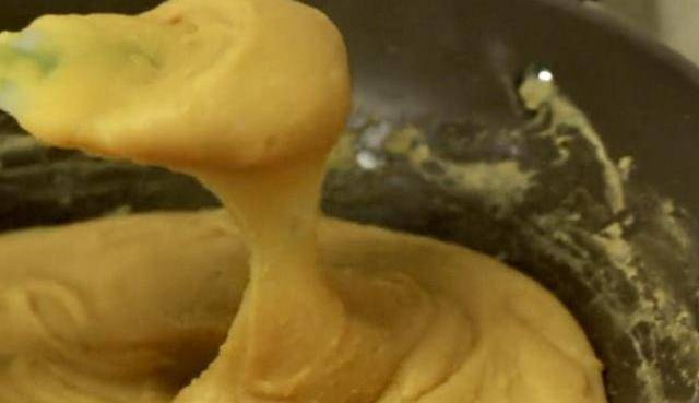3:豌豆煮好後,要記得用勺子都壓成泥,用過濾網過濾一遍,把裡面的顆粒都過濾出來,把豌豆泥放在鍋裡,加上一碗白糖,開小火邊加熱邊攪拌,大約加熱5分鐘出鍋。