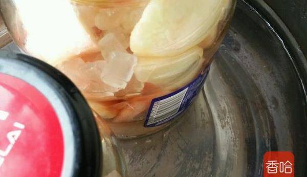 3.放入冰糖,冰糖量以容器大小為據,大的多放些。