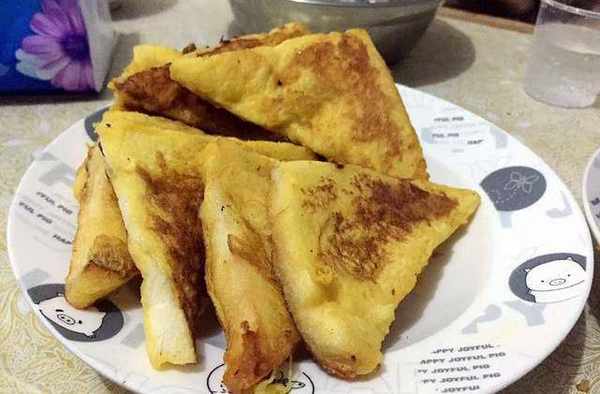 吐司最最金典的做法,那種爆漿的口感簡直不要太好吃。夾心一般是花生醬/芝士,我發現加新加坡的XO醬,也是發現一種新大陸的感覺。Tips是要剛炸好的時候就吃,根據個人口味淋上蜂蜜或者煉乳,切小口放入嘴巴,從此就愛上瞭。