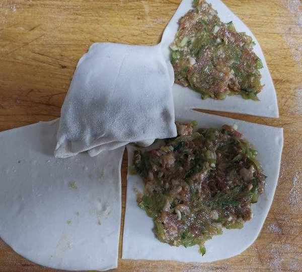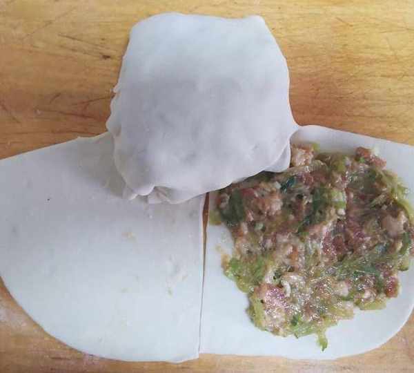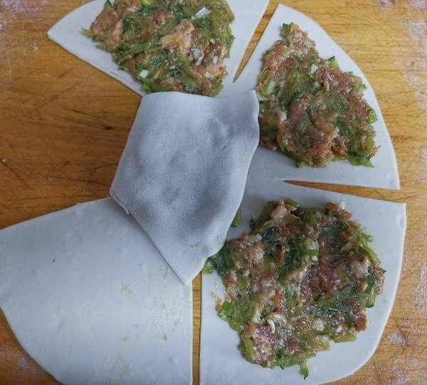 面皮不用搟的太薄,一元硬幣厚就差不多。蔬菜也可以換成自己喜歡的,蔬菜一定要攥的幹一些,肉餡太稀就不好包瞭。