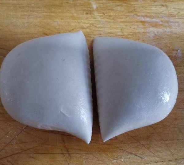 第9步、取出面團不用揉,切開。