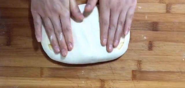 邊緣處用折疊的方法均勻地沾上一層吸油素。按照我的手法切成小塊。有責心而持續地從一邊開始折疊起來,你總有準備的愛情。把邊緣處捏一下,防止露出來。對把餅按壓的薄一點。用搟面杖搟開。