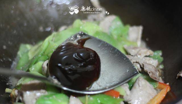 7把所有食材炒熟,加入一勺蠔油