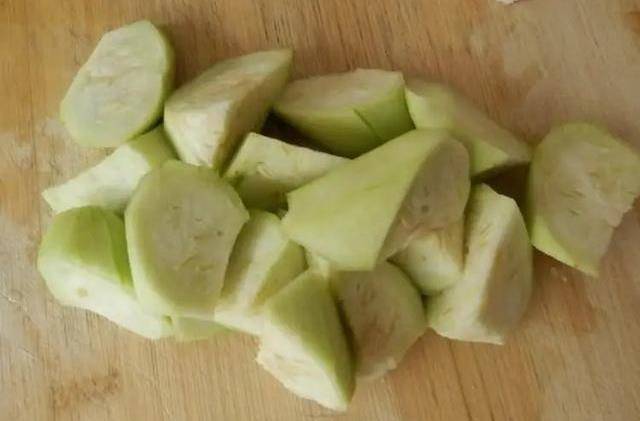 2.將絲瓜的表面處理幹凈後,清洗後切成塊,放在一旁,洗凈,將豆腐切成塊。